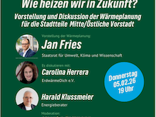 Mit Jan Fries (Staatsrat für Umwelt, Klima und Wissenschaft), Carolina Herrera (ErdwärmeDich e.V), Harald Klussmeier (Energiebrater)